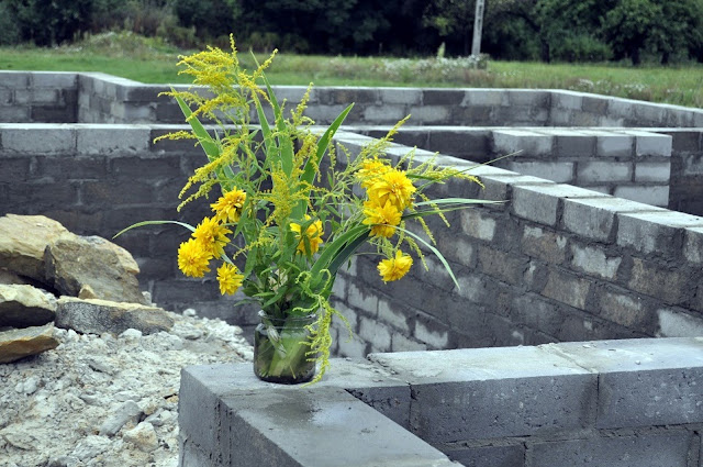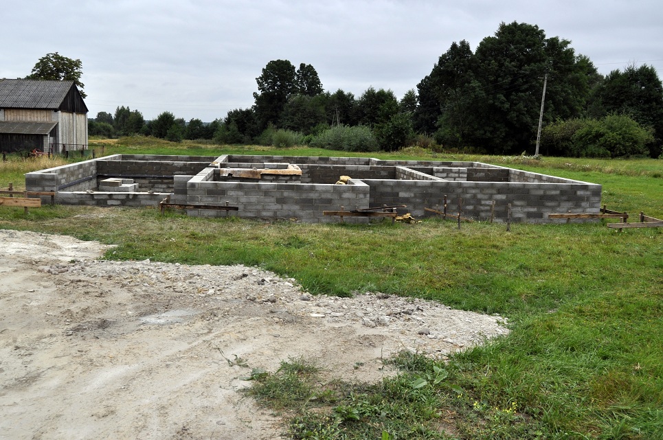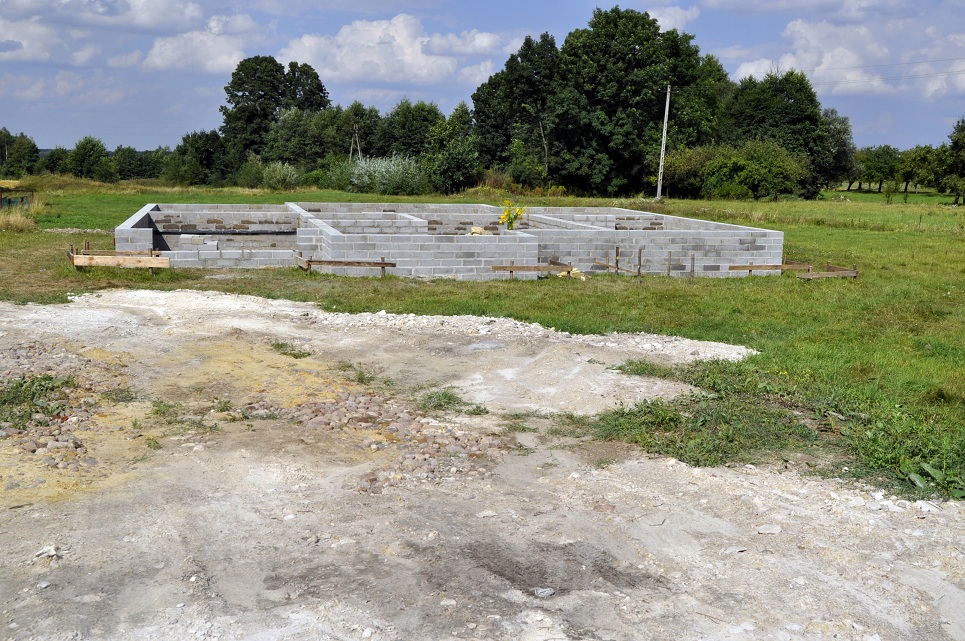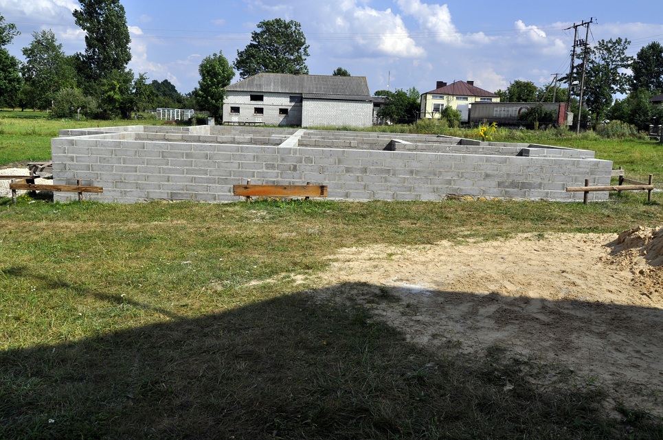 Musieliśmy domówić 600 sztuk bloczków, bo brakło - nie przewidzieliśmy, że teren jest tak nierówny, że poszło prawie drugie tyle. Z przodu domku podmurówka zrobiona jest na 5 bloczków, a z tyłu z jednej strony na 8, a z drugiej aż 11 (!!!).