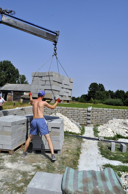 Panowie murarze przyszli w środę o 8:00 i zaczęli stawianie. Pogoda dopisała i to aż za bardzo.